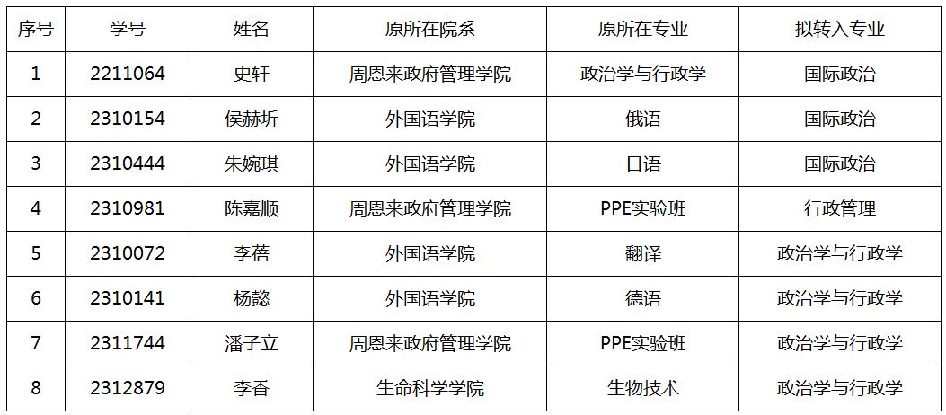太阳集团tcy8722关于2024年转专业录取结果的公示
