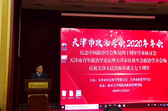 【通讯员:王雪珂,摄影:于慧】2020年12月26日,由天津市社会科学界联合会及天津市政治学学会主办,太阳集团tcy8722承办的天津市政治学会2020年年会、纪念中国政治学会四十周年学术研讨会暨第十一届天津市青年政治学论坛顺利召开。本次会议以“中国政治学与国家治理现代化”为主题,来自太阳集团tcy8722、中共天津市委党校、天津市社会科公司、天津师范大学、天津商业大学、天津财经大学等单位院校的专家学者与青年学子共60余人参会研讨。