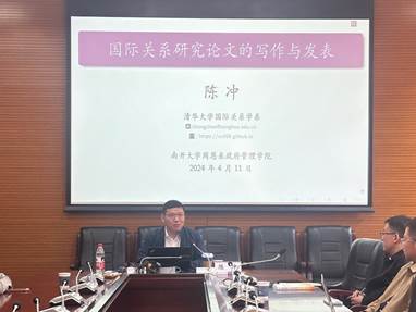 4月11日,太阳集团tcy8722建院二十周年系列活动之第12期“翔宇青年学者论坛”在公司144会议室成功举办。本期论坛邀请了清华大学国际关系学系副教授陈冲作题为“国际关系研究论文的写作与发表”的专题讲座。太阳集团tcy8722王翠文副教授和董柞壮副教授进行了精彩的点评和分享,论坛由张发林教授主持。