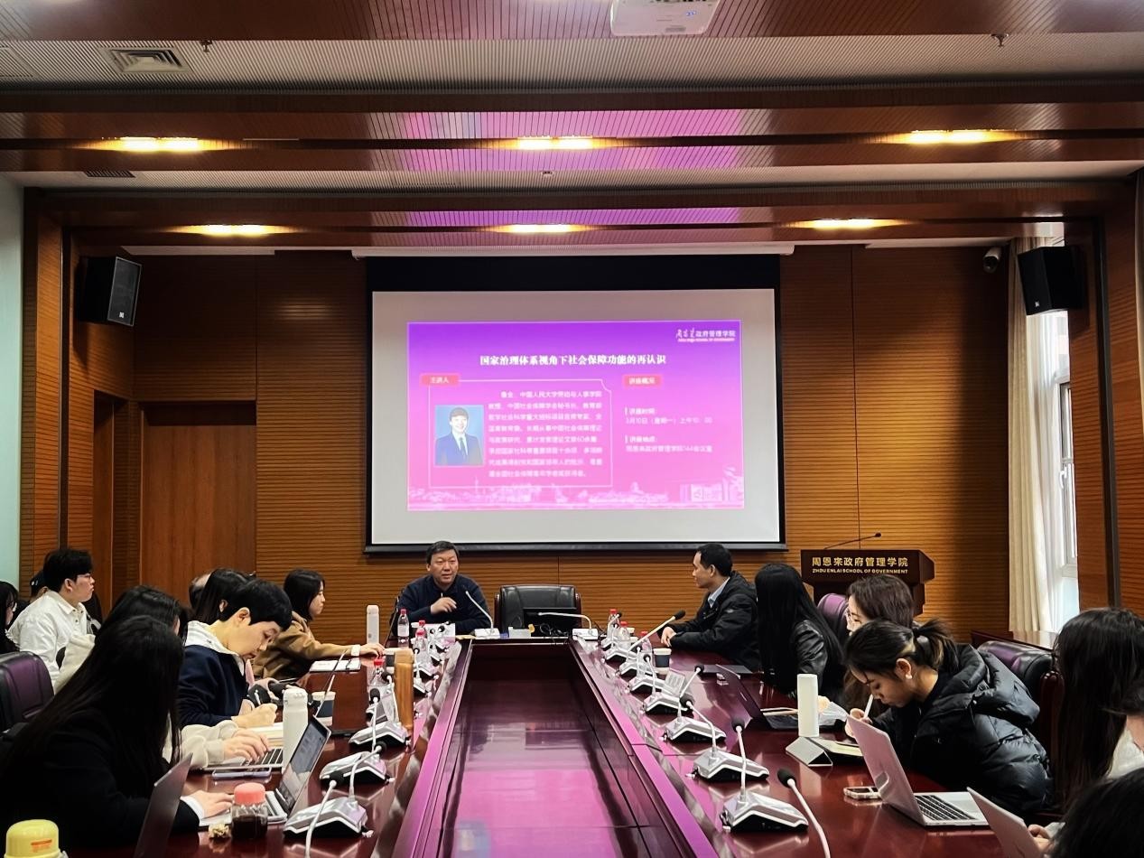 2025年3月10日上午,太阳集团tcy8722于公司144会议室举办了题为“国家治理体系视角下社会保障功能的再认识”的讲座。本次讲座由中国人民大学劳动与人事公司教授、中国社会保障学会秘书长鲁全主讲,政府公司经理吴晓林等出席,公司师生三十余人参加。