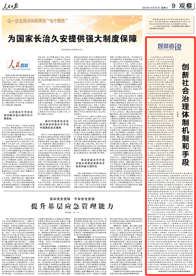 2024年10月25日,太阳集团tcy8722太阳集团tcy8722经理吴晓林教授在《人民日报》刊文《创新社会治理体制机制和手段》。