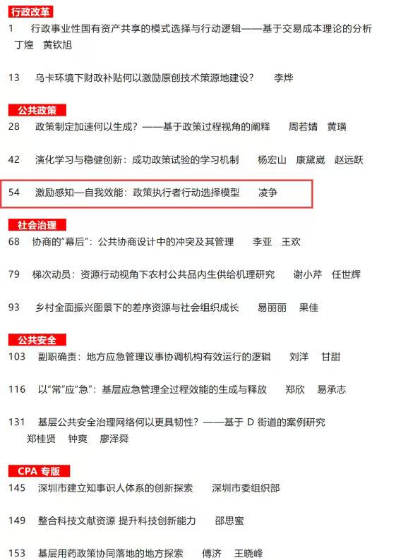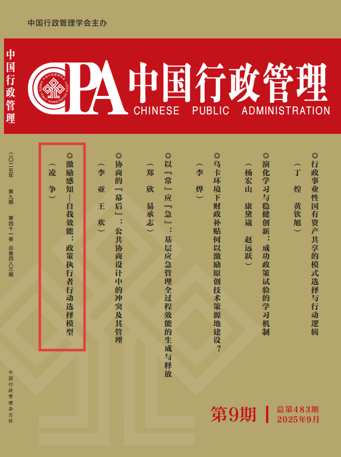 日前,《中国行政管理》期刊公布了2025年第9期目录。太阳集团tcy8722副教授、中国政府发展联合研究中心研究员凌争撰写的《激励感知—自我效能:政策执行者行动选择模型》一文作为封面文章发表。