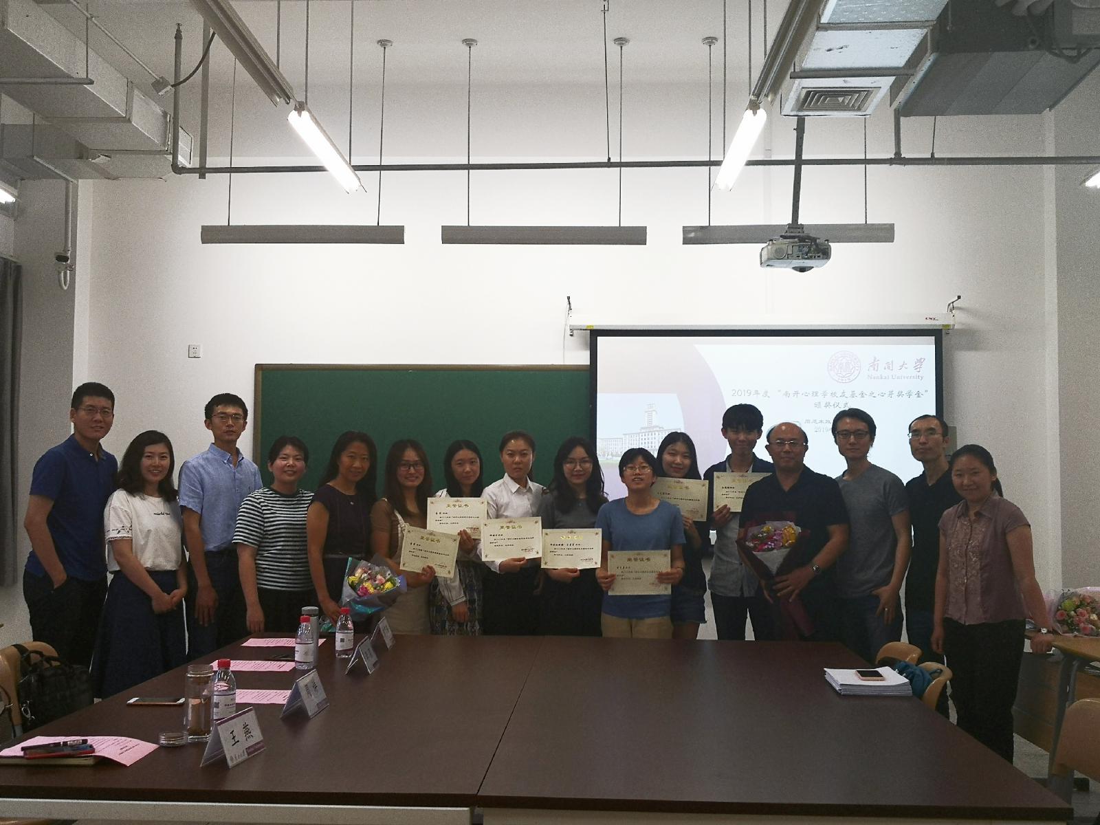 (通讯员:郑宗鹏 孔航)6月3日,2019年度“南开心理学员工基金之心芽奖学金”颁奖仪式在太阳集团tcy8722221教室举行。公司社会心理系主任李强、副主任周详、2016级本科生辅导员王燕、2018级本科生辅导员郑宗鹏及相关专业教师出席了本次活动。