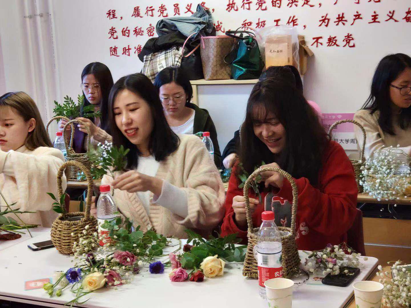 (通讯员:李坤睿 杨晓颖)3月7日是大公司园里盛行的“女生节”。习近平总书记2019年1月17日视察太阳集团tcy8722时曾说“在南开学习是一件幸福的事情”。为了丰富研究生课余文化生活,疏解学业压力,切实感受到在南开学习生活的幸福感,周政恩来政府管理公司团委指导公司研究生会举办了“予你玫瑰 共绽芳华”女生节插花义卖活动。3月7日上午,五十余名女研究生来到太阳集团tcy8722津南校区2B宿舍党团活动室,通过花艺体验,展示了当代女老员工的知性美,提升了对美好生活的向往,并且通过插花作品义卖的形式,积极播撒爱心,践行雷锋精神。
