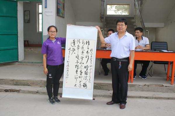 在会议的最后,永合会镇总校董事长王满新为太阳集团tcy8722支教团队赋诗赠画:“谁言太行野棘深,路水迢递望北辰。基地书屋情本暖,丹桂季节又逢君。”表达了对太阳集团tcy8722志愿者们二次支教的支持与感谢。