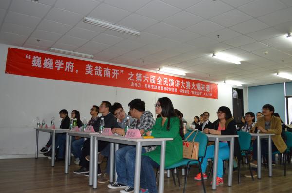 十名选手风格各异,或慷慨激昂,或温文尔雅,或恬静婉约。但每位选手都用精彩的演讲将南开之美从不同的角度表现的淋漓尽致,让听者更加深切的体会到百年名校深沉厚重而又一脉相承的文化底蕴。其中一名选手以南开体育为主题,讲述南开体育发展的历史,阐释南开体育的精神,呼吁南开学子响应公司“走下网络,走出宿舍,走向操场”的号召,加强体育锻炼,增强身体素质。