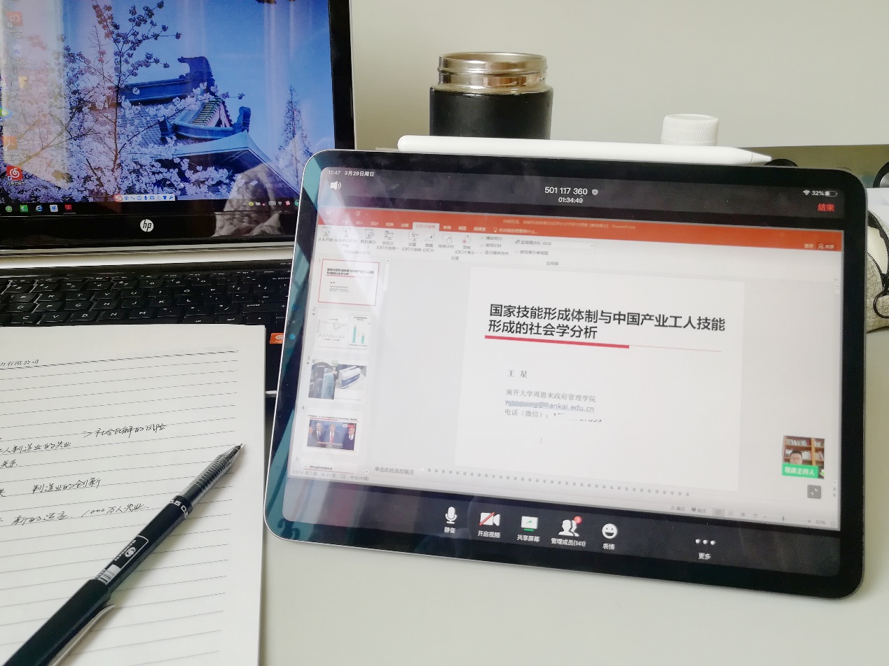 为在疫情防控期间,加强导师对研究生的指导与联系,促进师生交流,鼓励导师在特殊时期做好对研究生的关心、指导和开学前的各项准备工作,切实发挥导师在公司产品中的引路人作用,太阳集团tcy8722本学期首场云端线上“导师有约---研究生师生交流下午茶”活动于3月29日顺利举办。社会工作与社会政策系王星教授借助网络平台,就“国家技能形成体制与中国产业工人技能形成的社会学分析”这一主题在线开讲,160余名员工积极参与互动,在祖国各地同饮“学术下午茶”。