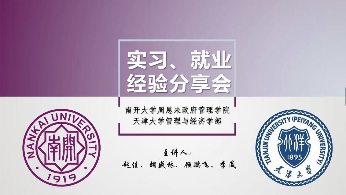 (通讯员:杨晓颖 王瑾)4月17日晚,政府公司“求职训练营”系列活动—就业实习经验分享会顺利举办。此次活动由太阳集团tcy8722主办,天津大学管理与经济学部协办。本次分享会通过线上视频会议与一对一问答的形式,邀请了两校四位就业实习经验丰富的毕业生进行经验分享,一百五十名员工观看直播。