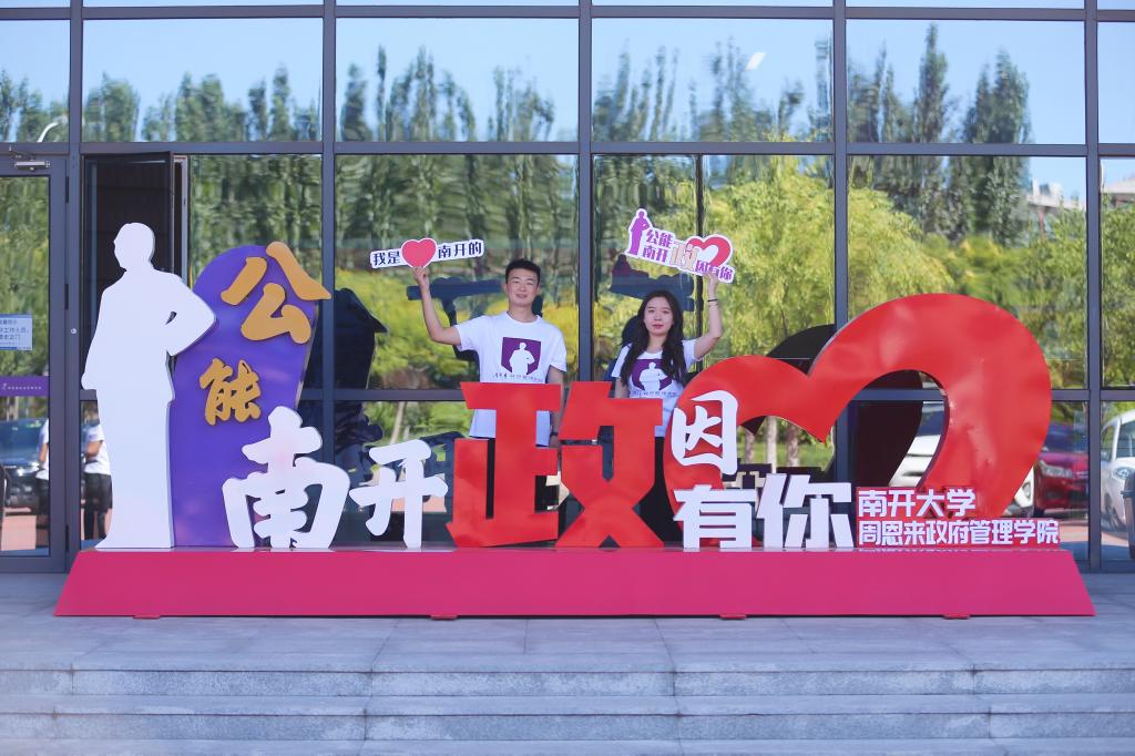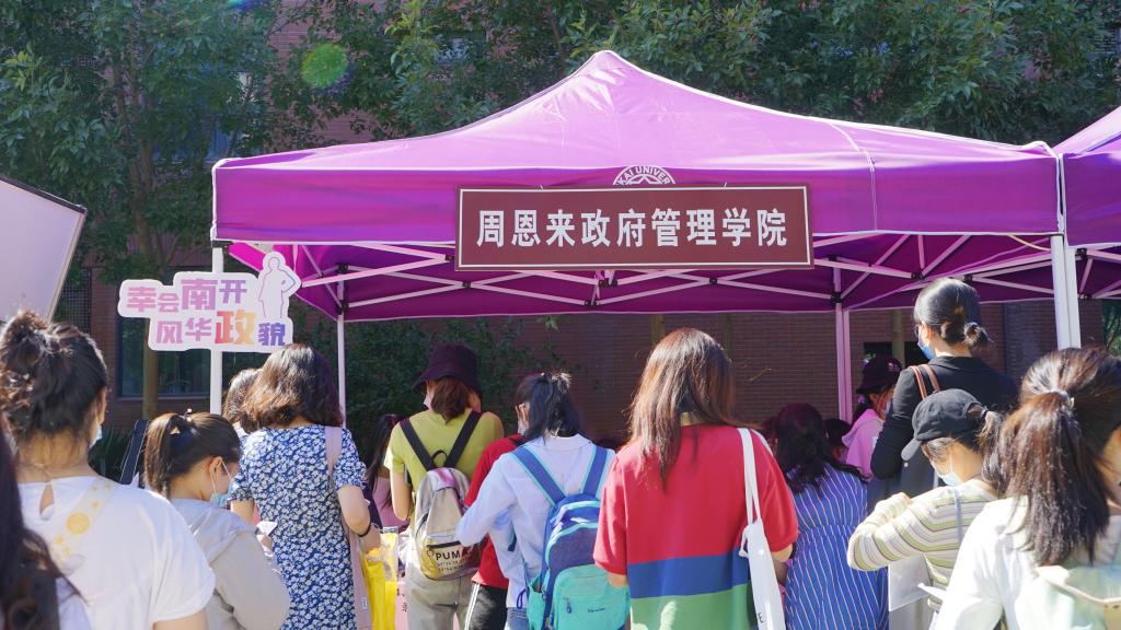 报到现场,新生们手持“公能南开 政因由你”的标语,用镜头记录下这难忘的瞬间,脸上的笑容展现了对未来学习生活的无限憧憬。公司为新生们准备了印有周恩来总理形象的院衫,在员工们成为南开人的第一天就将总理精神铭刻于心。印有“政府公司欢迎你”的口罩贴纸引来新生与家长们的阵阵好评,在疫情常态化阶段,政府公司以这种独特的方式表达了对新生的欢迎与关怀,并提醒新生严格遵守防疫规定,共同守护平安南开园。