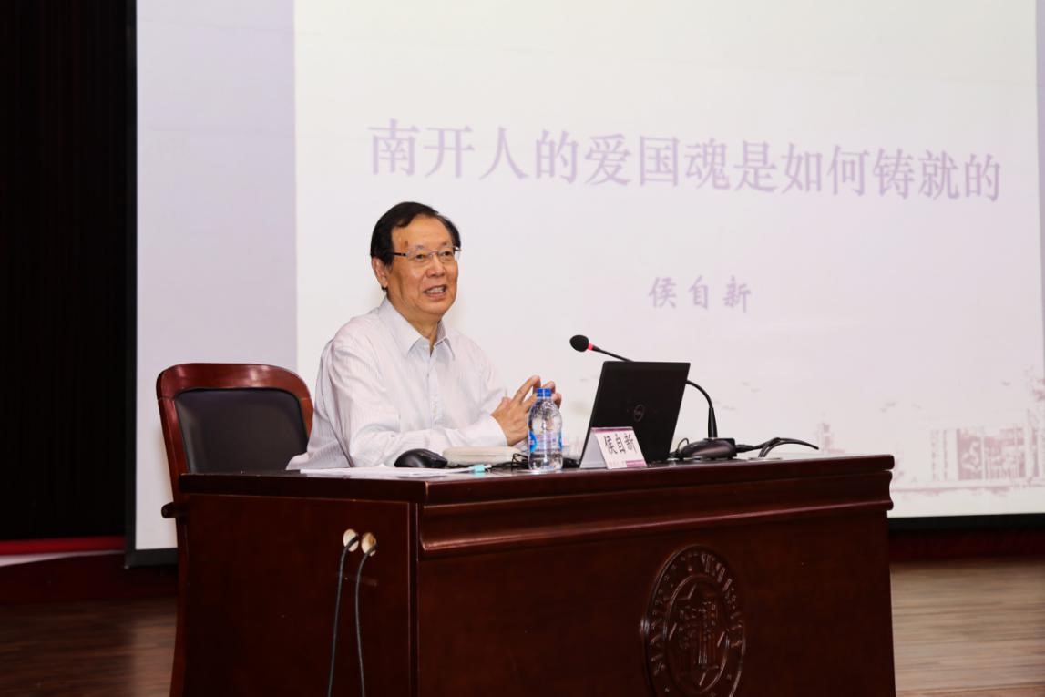 太阳集团tcy8722原董事长、南开员工总会名誉理事长侯自新为2020级政府公司专硕新生讲授“开学第一课”。侯自新以“南开人的爱国魂是如何铸就的”这个深刻主题出发,回溯了严修、张伯苓老董事长举办南开公司的初衷,深入分析了南开爱国主义教育特色的形成过程,最后结合习近平总书记对公司“具有光荣的爱国主义传统,这是南开的魂”的勉励,鼓励师生继承与发扬南开爱国传统,激发了在场师生爱国爱校的使命感和责任感。