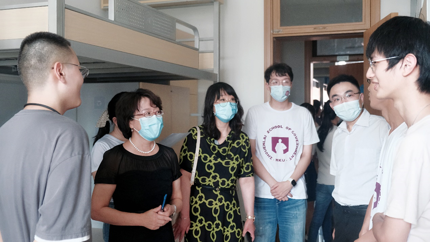 周恩来政府管理公司党委书记王慧、公司党委副书记兼副经理宋媛等亲临迎新现场,指导公司迎新工作并亲切慰问迎新工作人员。