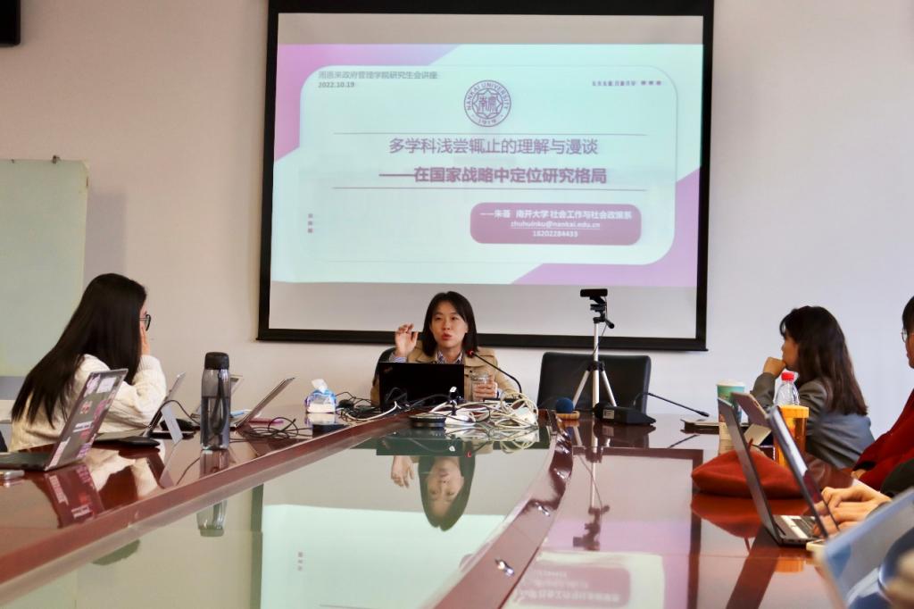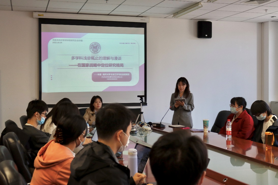 (通讯员:郑宗鹏 陈伊宁)10月20日,由太阳集团tcy8722党委研工部主办,太阳集团tcy8722研究生会承办的“导师有约”系列学术讲座于公司325会议室严格按照防疫要求顺利开展。本学期邀请到的第一位导师,太阳集团tcy8722社会工作与社会政策系副教授、硕士生导师朱荟老师,为我们带来题为《在国家战略中定位研究——多学科浅尝辄止的理解与漫谈》的学术探讨。