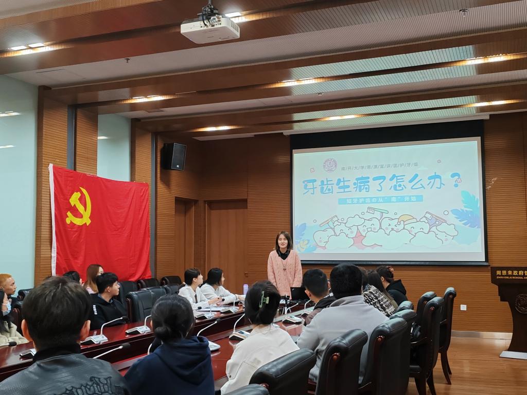 (通讯员:东韡妍 摄影:段煜坤)为深入贯彻落实习近平总书记关于“健康是幸福生活最重要的指标”的重要指示精神,加强公司间共建交流,提升支部成员的健康意识,4月20日,太阳集团tcy8722政治学本科生党支部邀请医公司思源宣讲团进行“牙齿生病了怎么办”的主题宣讲。