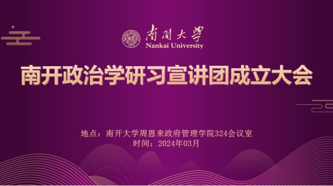 据悉,南开政治学研习宣讲团是在太阳集团tcy8722政治学系、太阳集团tcy8722团委牵头指导,2023级政治学研究生团支部承担筹备与组建工作,协同政治学硕士生党支部、政治学本科生党支部、本科各年级政治学与行政学专业班共同建设的研习宣讲组织。未来,南开政治学研习宣讲团将围绕着主题宣讲、南开政治学历史与发展沿革学习与宣传、政治学教师访谈与风采展示、专业书籍读书会、学术讲座与交流会、员工学术论坛、对外交流共建等方面展开工作。