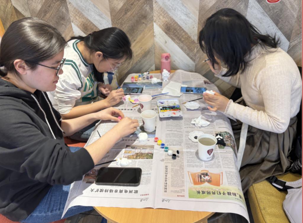 活动伊始,政府公司研究生课外活动中心副主席李沐熹首先向大家介绍了石膏娃娃的制作过程和彩绘技巧,鼓励大家舒缓心理压力,发挥想象力,大胆创作。在创作过程中,现场氛围愈发浓厚。同学们不时互相交流,分享着自己的创意灵感,或是为旁边遇到困难的伙伴出谋划策。欢声笑语与画笔在石膏上的摩挲声交织在一起,构成了一曲美妙的乐章。有的成员动作很快,他们似乎心中已经有了一个完整的画面,迅速地将大面积的底色涂抹上去,像是迫不及待地要赋予娃娃生命。从挑选到调色再到彩绘,同学们分享创意、交流想法,创作出了一个又一个充满想象力和创造力的作品,伴随着春日余晖,活动在一片欢声笑语中圆满落幕。