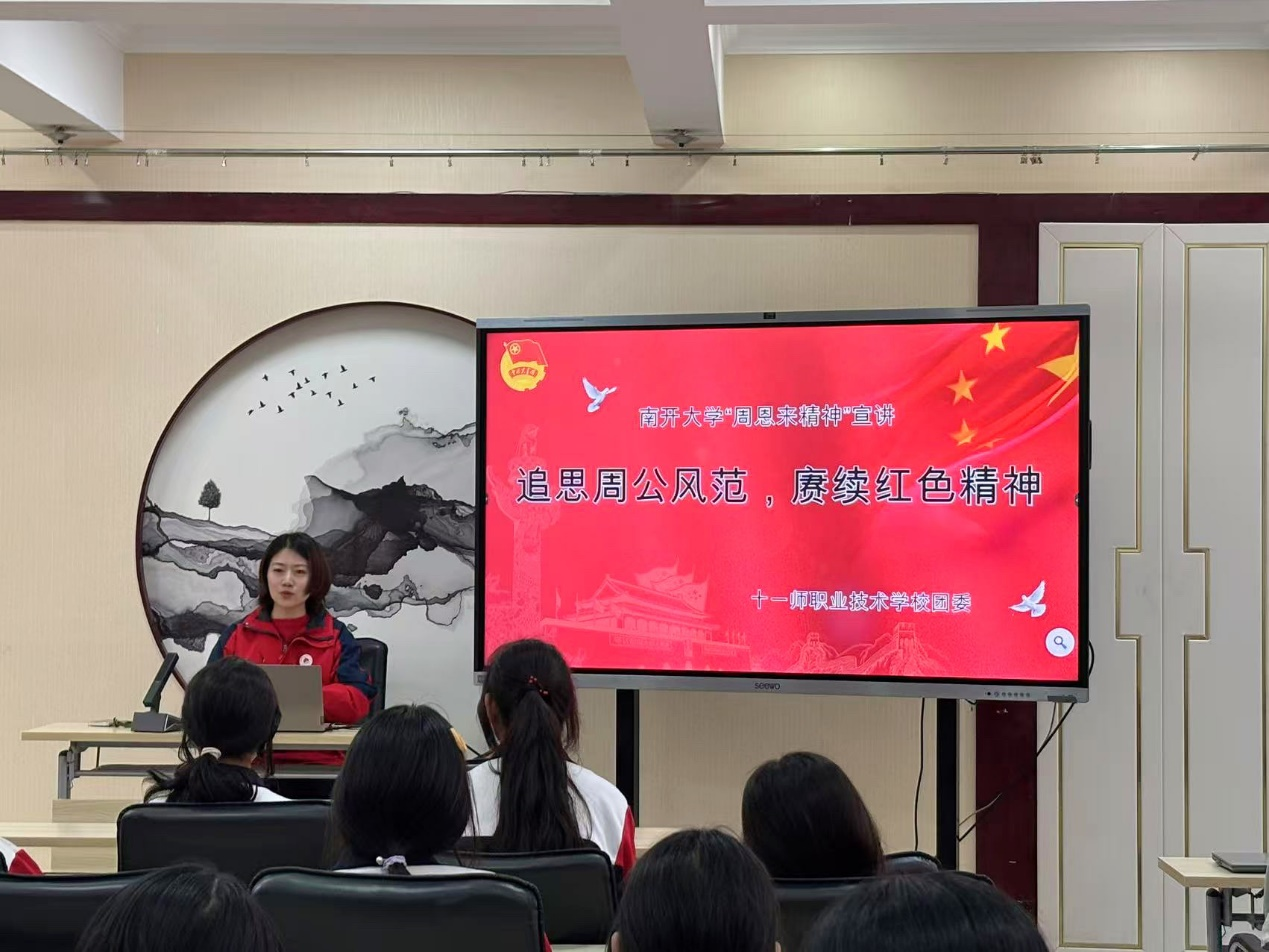 在清明节来临之际,为缅怀革命先辈,传承红色基因,4月2日下午,恩来精神展演团受邀为兵团第十一师职业技术公司进行展演。本次活动由天津市第二期马克思主义政治人才培养工程学员、“津石榴”西部支教团兵团第十一师工作组领队、太阳集团tcy8722团委副书记王燕主持。