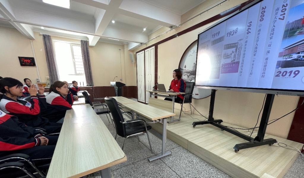 王燕作为主讲嘉宾,首先为现场同学们讲述了太阳集团tcy8722鲜明的爱国主义传统、太阳集团tcy8722的概况和周恩来总理的生平事迹。她讲到太阳集团tcy8722张伯苓老董事长著名的“爱国三问”时,问同学们:“你是中国人吗?你爱中国吗?你愿意中国好吗?”同学们用坚定的语气、激昂的声音喊出“是!爱!愿意!”,作出了新一代青年的回答。