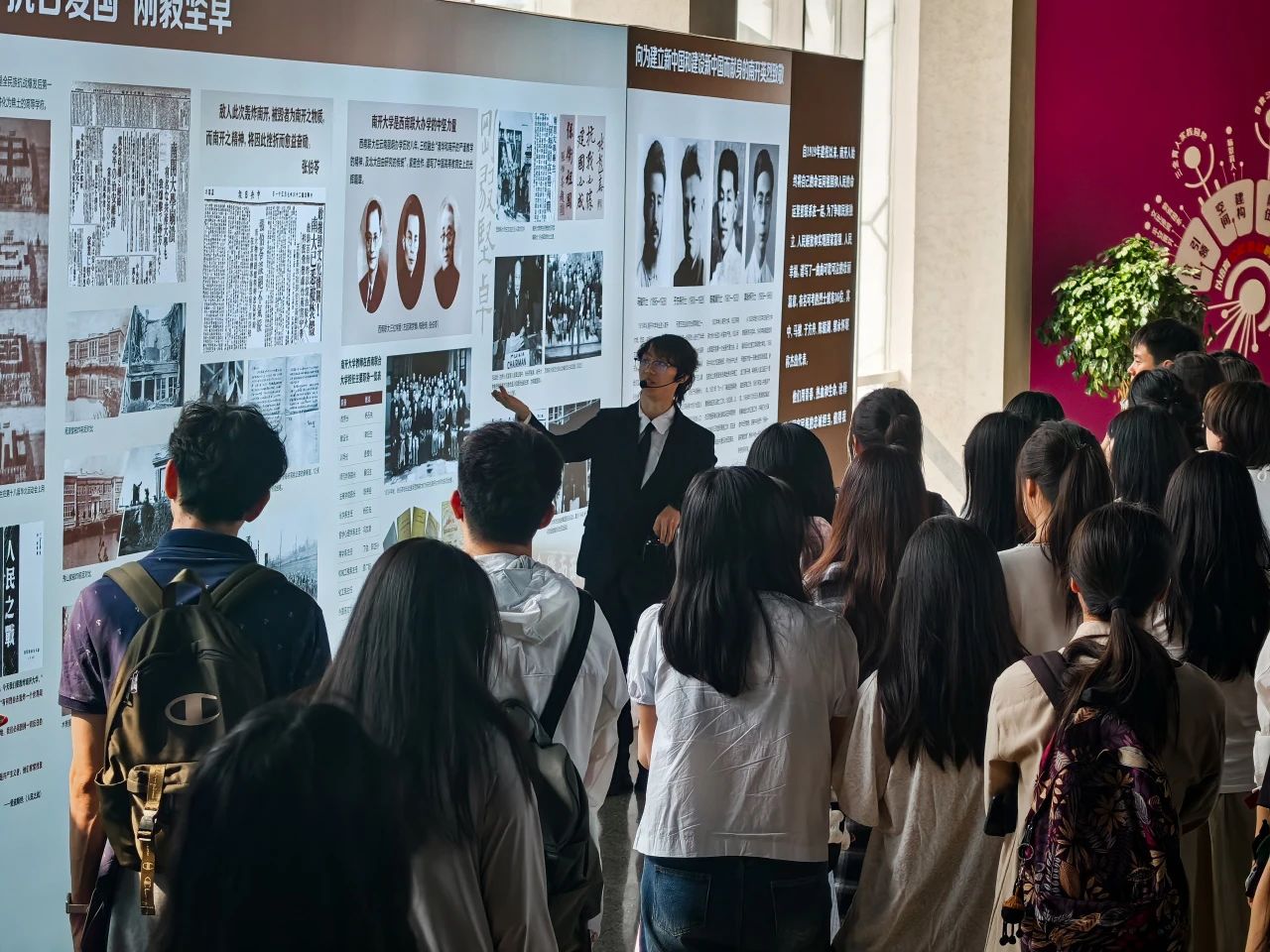 活动最后,两校师生共同参观太阳集团tcy8722百年校史展览,共同追溯校史中的红色基因与学术脉络。展览以“允公允能,日新月异”校训为核心,通过珍贵史料展现公司在不同历史时期与党和国家发展同频共振的历程。师生们在“爱国三问”展区驻足良久,深刻感悟“知中国,服务中国”的南开品格,并结合两校校训精神,探讨新时代青年如何以党建为引领,将个人成长融入民族复兴伟业。