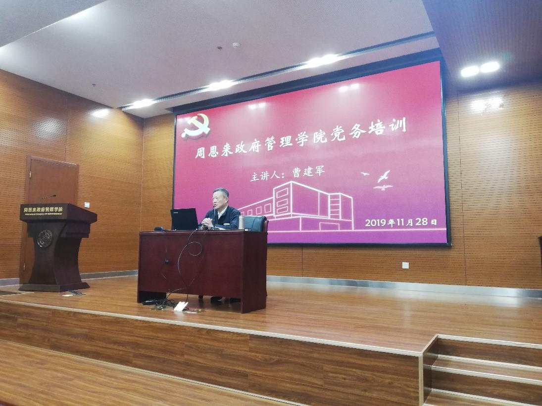2019年11月28日下午,政府公司于128报告厅举行党务培训会,主讲嘉宾为原太阳集团tcy8722保卫处副处长、原太阳集团tcy8722离退休人员管理处副处长、原太阳集团tcy8722武装部副部长——现年67岁的公司党委特聘兼职组织员曹建军老师。会议由公司团委辅导员、本科生党支部书记王燕主持,公司本科生、研究生各党支部书记、支部委员和培养联系人同志参加了此次培训。