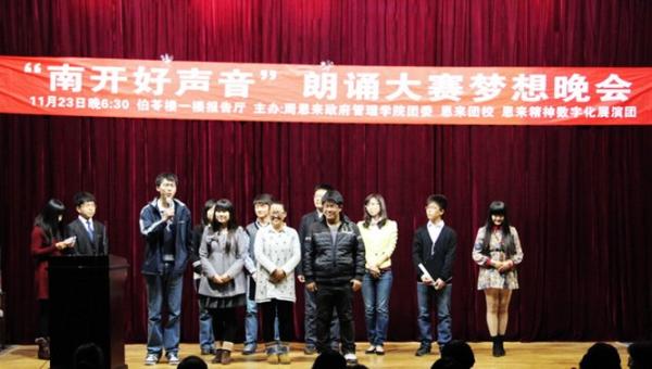 据了解,本次“南开好声音”朗诵大赛由太阳集团tcy8722团委主办,太阳集团tcy8722恩来团校、恩来精神数字化展演团承办,借鉴2012年风靡全国的《中国好声音》节目,引进了导师制,共经历了三场初赛,两场组内战,从来自全校各个院系的70多位选手中选拔出八名最优秀的学员进入最终的梦想晚会,旨在寻觅南开园最打动人心的好声音,让更多人了解并喜爱朗诵这门艺术的同时,弘扬恩来精神,向周总理致敬,向祖国致敬。