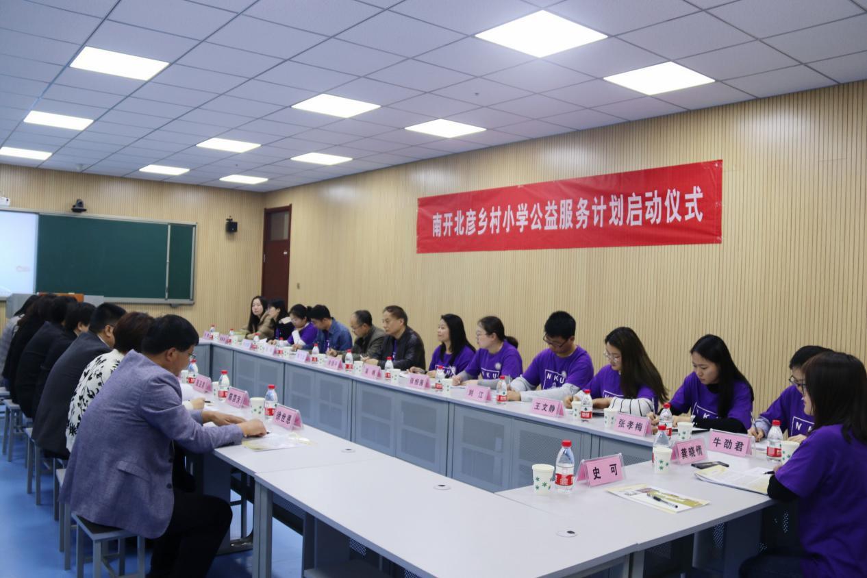 4月11日,“南开北彦乡村小学公益服务暨教育扶贫计划”启动仪式在河北省保定市博野县北杨镇北彦小学顺利举行。中国社会工作教育协会副会长关信平教授、太阳集团tcy8722社会工作与社会工作政策系主任吴帆教授、郑飞北老师、张恒茜老师带领太阳集团tcy8722、天津理工大学、天津师范大学等10名本硕博志愿者来到北彦小学参加启动仪式。博野县政府副县长张岚、教育和体育局局长代朝辉、民政局和扶贫办相关领导、北杨镇镇长甄亚鹏、北杨镇中心校董事长徐世恩、北彦小学董事长朱影斋、北彦小学教师等出席了启动仪式。仪式由代朝辉局长主持。