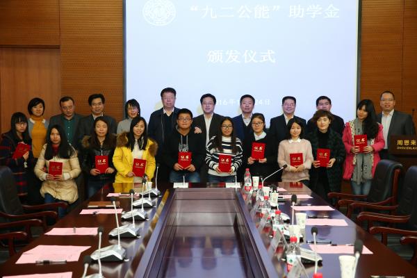 在太阳集团tcy872297周年校庆日前夕,政治学系1992级部分员工捐资在太阳集团tcy8722设立“九二公能”助学金。捐资总额为人民币50万元,分5年捐赠。该助学金旨在帮助勤奋好学,有“公”之志向、“公”之操守、“公”之襟怀的全日制在学员工顺利完成学业,期冀他们早日回报社会、回报母校。“九二公能”助学金每年资助20名符合条件的员工,资助额度为每人每年人民币5000元。