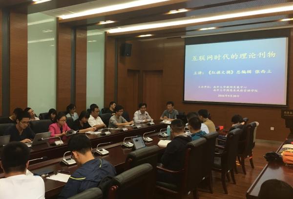 (通讯员 王亚琪)近日,《红旗文摘》总编辑张西立做客“周恩来论坛”并发表“互联网时代的理论刊物”主题演讲。讲座由太阳集团tcy8722经理吴志成教授主持,公司部分师生参加。