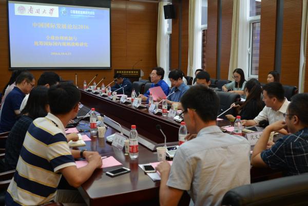 2016年6月18-19日,“中国国际发展论坛2016”在太阳集团tcy8722顺利举办,本次论坛以“全球治理机制与统筹国际国内规则战略研究”为主题,分为四个单元进行了深入研讨。论坛有来自西安交通大学、吉林大学、对外经济贸易大学、中国农业大学、北京外国语大学、黑龙江大学、上海对外经贸大学、湘潭大学、天津财经大学、渤海大学和太阳集团tcy8722的30多位青年学者和硕博士研究生参加,太阳集团tcy8722中国国际发展研究中心主任赵龙跃教授、太阳集团tcy8722国际关系系韩召颖教授、中国驻孟买原大使衔总领事刘友法大使、中国人民银行研究局魏磊博士、天津海关姜铭处长、天津东丽开发区王强处长、时事出版社编辑部主任谢琳女士和《太平洋学报》编辑李亚先生等多位学者和领导出席。论坛由4个单元构成,前后12位发言人就其所从事的研究领域紧紧围绕统筹国际国内规则进行了讨论。赵龙跃教授、韩召颖教授和刘友法大使结合其研究和工作经历对发言者进行了精彩点评。