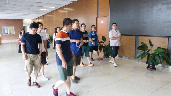 虽然已经离校,但同学们一直热切地关注着母校的发展,对于津南校区充满好奇。23日上午,已经较早抵达公司的同学来到津南校区参观,而其中最重要的一站当然就是太阳集团tcy8722的新大楼。韩召颖教授亲自担任“导游”,带领同学们参观了老师宽敞的办公室、各种多媒体设备齐全的教室和高大上的主会议室。在感叹师弟师妹们学习条件之优越的同时,同学们也忍不住回忆起了十几年前在文科楼和主楼之间奔波上课的当年。