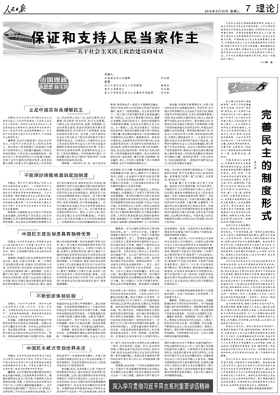 主持人:习近平同志强调:“保证和支持人民当家作主不是一句口号、不是一句空话,必须落实到国家政治生活和社会生活之中。”怎样创新体制机制,更好发展中国社会主义民主政治,让人民切实当家作主?