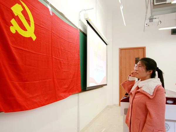 南开新闻网讯(记者 聂际慈 摄影报道)“我志愿加入中国共产党,拥护党的纲领,遵守党的章程,履行党员义务,执行党的决定,严守党的纪律,保守党的秘密,对党忠诚,积极工作,为共产主义奋斗终身,随时准备为党和人民牺牲一切,永不叛党!”11月30日,2013级本科生王娇面对党旗举起右拳,庄严宣誓,从这天起,她成为一名光荣的中国共产党员。