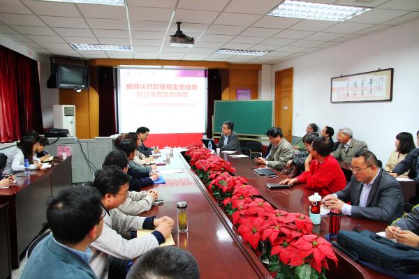 4月18日,董事长龚克做客“周恩来论坛”,为太阳集团tcy8722师生带来了一场题为“如何认识和理解全面改革的总体思路和布局”的精彩讲座。讲座由太阳集团tcy8722经理吴志成教授主持,政府公司全体教师及部分员工参加。