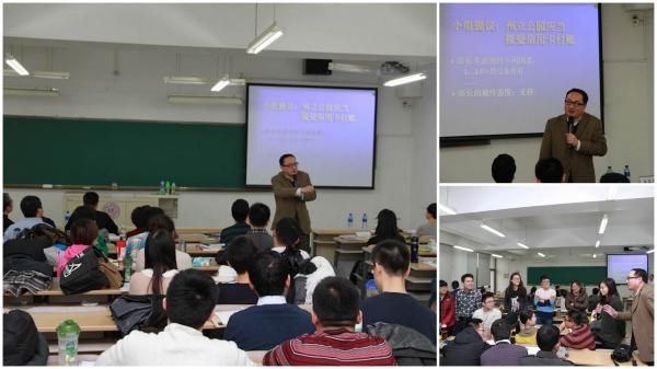 12月8日上午,作为两校本次交流活动重头戏的学术讲座在清华大学王名教授的授课声中拉开序幕,王名教授围绕着前不久十八届三中全会公报的内容具体阐述政府与社会的关系,描绘了三中全会深化改革总构图,从全面深化改革和全面推进治理创新两方面论述如何深化改革新体制。他提出了“社会新政”三大战略,即社会组织体制改革、社会服务体制改革、社会治理体制改革,同时提出“社会新政是一把解读社会建设新战略的钥匙”的独到见解,并从体制改革、制度创新、组织培育和自上而下四个方面进行解读。讲座结束后,在场MPA师生报以热烈掌声,纷纷表示收获颇丰。