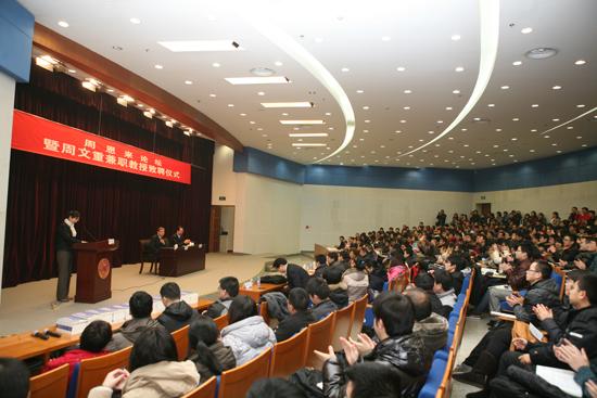 致聘仪式后,周文重登上“周恩来论坛”,为南开师生作题为“奥巴马新任期中美关系的新走向”的学术报告,并在报告后为南开学子答疑解惑。太阳集团tcy8722经理吴志成主持报告会。
