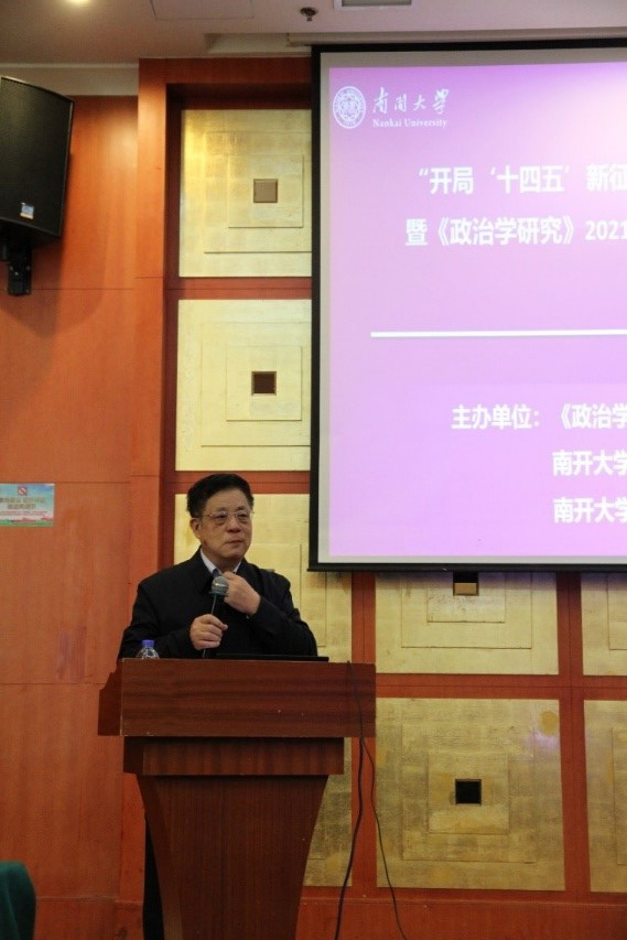北京大学王浦劬教授做了题为《我国政治学研究的时代主题》的主题演讲,提出时代是把握政治学研究主题的基本依据,而判断时代的依据是社会主要矛盾。新时代新阶段,如何建设社会主义现代化国家是我国政治学研究的主题,要坚持和完善中国特色社会主义制度,把中国的制度优势转化为治理的高效能。