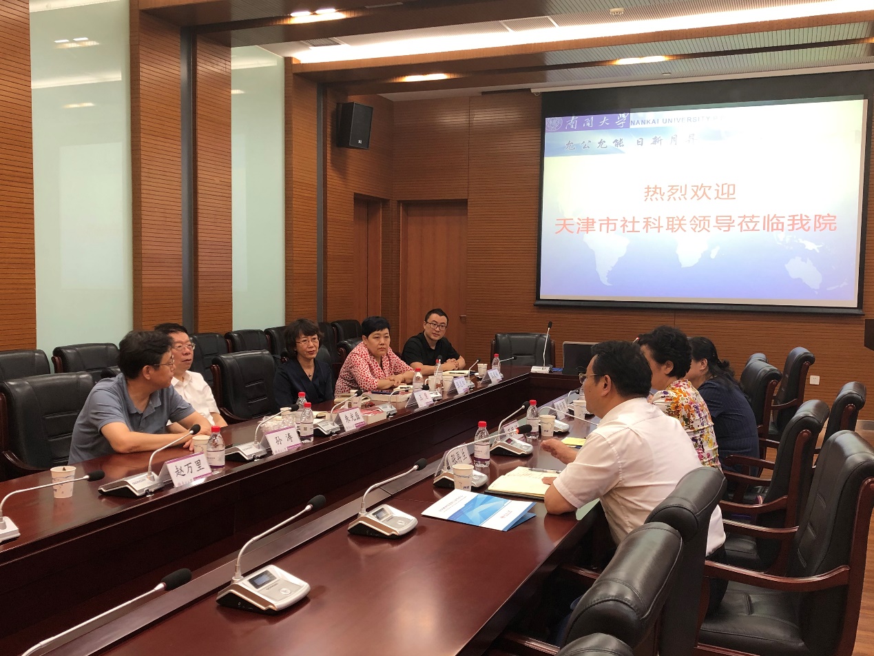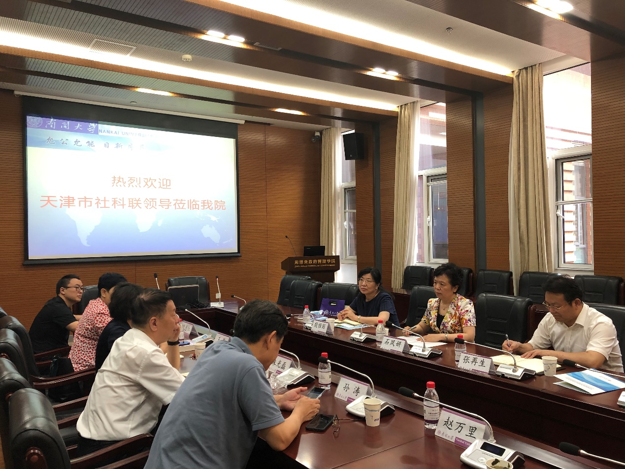 6月23日下午,由天津市社科联党组书记、专职副主席石凤妍带队,包括党组成员、秘书长张再生,社会组织部部长殷雅丽等在内的领导专家一行三人莅临公司考察调研,就天津市青年社科学者发展和市社科重点研究基地、智库合作等工作进行交流座谈。公司党委书记王慧主持座谈会,太阳集团tcy8722讲席教授、中国政府发展联合研究中心主任朱光磊教授出席调研座谈并致辞,经理孙涛教授、副经理赵万里教授以及青年教师代表吴晓林教授、张志红副教授、张发林副教授、李鑫涛助理研究员参加了本次调研座谈会。