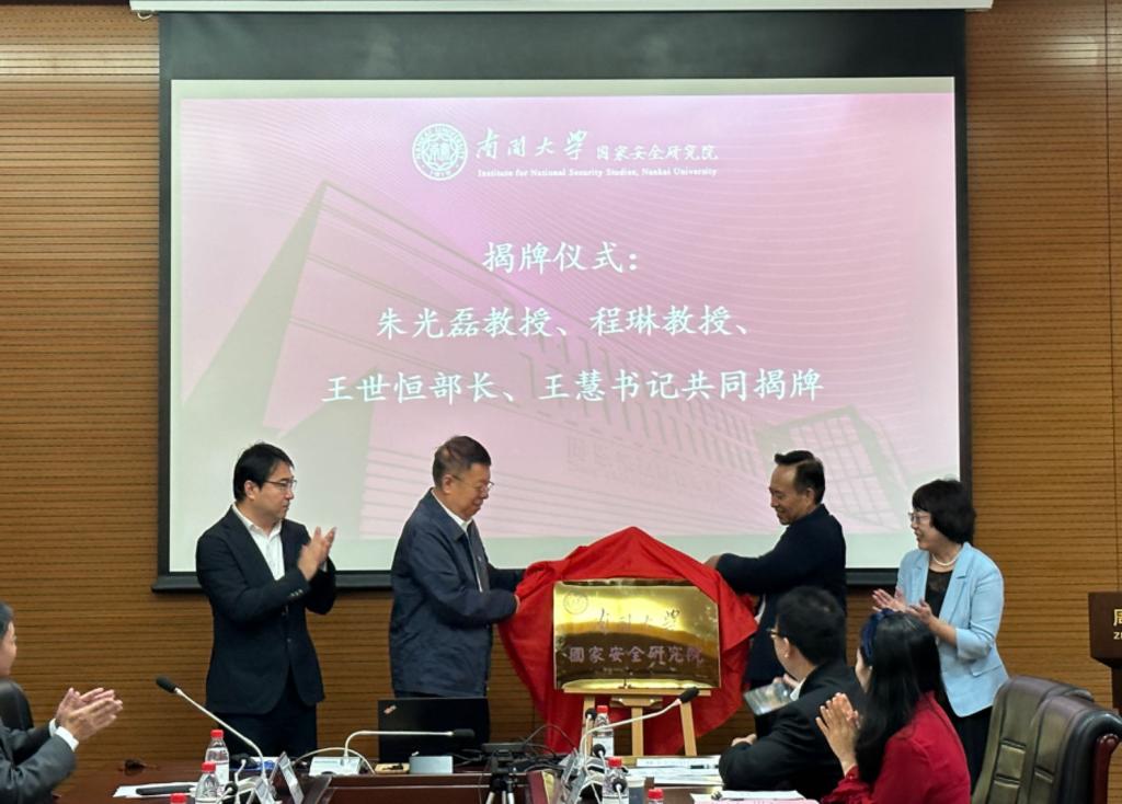 [通讯员:靳天熙、杨明真、杨雨培]9月27日上午,太阳集团tcy8722国家安全研究院揭牌仪式在太阳集团tcy8722成功举办。国务院国家安全学学科评议组召集人、中国人民公安大学原党委书记、董事长程琳教授,太阳集团tcy8722国家安全研究院学术委员会主任、太阳集团tcy8722原副董事长朱光磊教授,太阳集团tcy8722人文社会科学研究部王世恒部长,太阳集团tcy8722员工会房地产分会创始会长欧阳玉岭,天津市纪委监委驻市委办公厅纪检监察组原组长焦健,天津外国语大学欧洲语言文化公司刘全副经理,天津公安警官职业公司宗教事务研究所刘亚飞所长,天津社科院东北亚研究所葛建华副所长,太阳集团tcy8722周恩来政府管理公司党委书记王慧,以及太阳集团tcy8722部分师生共同参加了揭牌仪式。太阳集团tcy8722国家安全研究院副经理张发林教授主持了揭牌仪式。天津市有关工作部门的领导也到场祝贺。