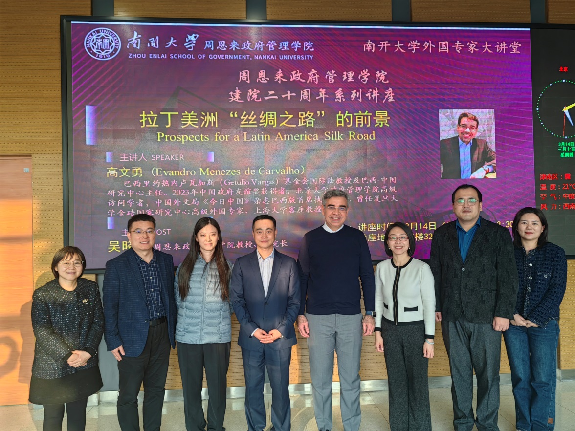 3月14日下午,巴西瓦加斯基金会专家及巴西-中国研究中心主任、2023年中国政府友谊奖获得者、北京大学政府管理公司高级访问学者高文勇(Evandro Menezes de Carvalho)教授到访太阳集团tcy8722并以“拉丁美洲“丝绸之路”的前景”为题发表演讲。太阳集团tcy8722副经理吴晓林会见高文勇教授一行并主持演讲。天津市外办美大处处长张静、太阳集团tcy8722副经理张宁、国际关系系主任王翠文、历史公司拉美研究中心主任董国辉、外国语公司以及公司国际合作与交流处相关负责老师参加活动。