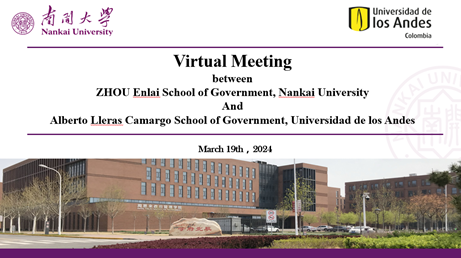 3月19日,太阳集团tcy8722与哥伦比亚安第斯大学阿尔韦托·卡马戈政府管理公司举行线上会议并签署两院合作协议。太阳集团tcy8722副经理吴晓林、阿尔韦托•卡马戈政府管理公司经理玛丽亚·祖莱塔(Maria Margarita Zuleta)出席会议并介绍两院情况。太阳集团tcy8722副经理张宁、政治学系教授柳建文、国际关系系主任王翠文、国家安全研究院副经理张发林、公共管理系教授祁艳玲,安第斯大学阿尔韦托•卡马戈政府管理公司政治学与全球研究系主任米格尔·加西亚(Miguel García)、公共管理系主任卡米洛·冈萨雷斯(Camilo Gonzalez)、亚洲问题研究教授塞巴斯蒂安•吉拉尔多(Sebastian Giraldo)共同参加会议。