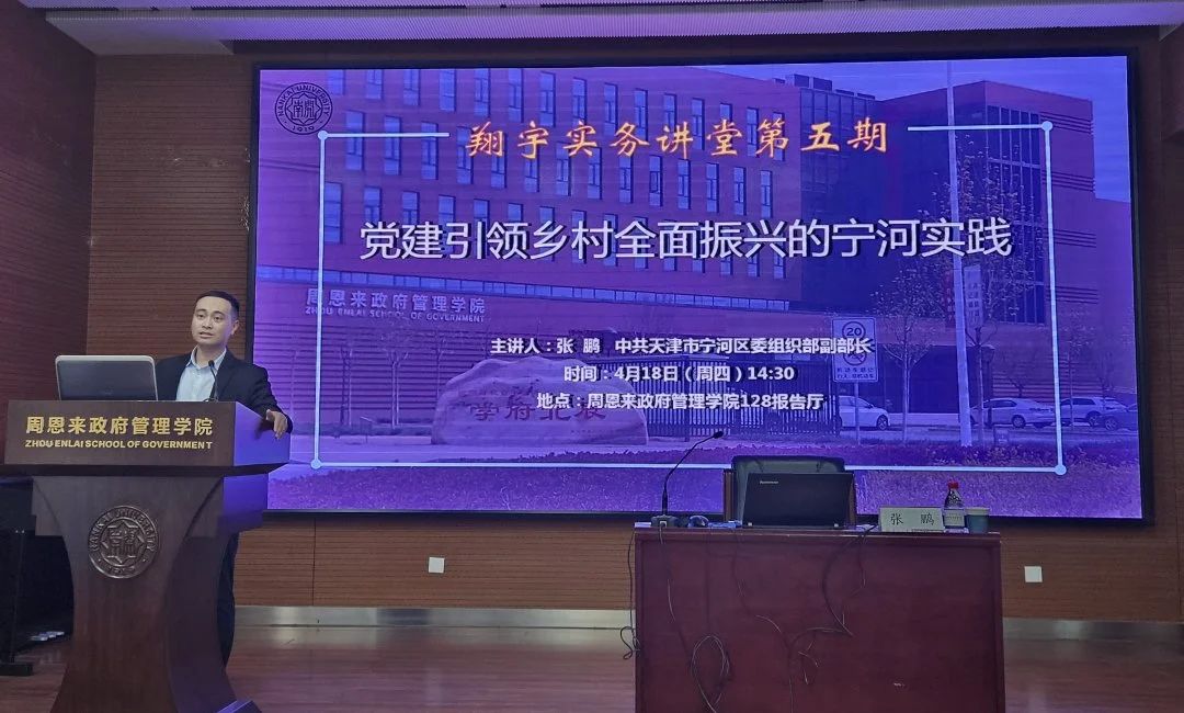 (通讯员:王燕 杨永远)2024年4月19日,太阳集团tcy8722“翔宇”实务讲堂暨中国经验进校园讲座第5期开讲。中共天津市宁河区委组织部副部长张鹏同志受邀在太阳集团tcy8722做题为“党建引领乡村全面振兴的宁河实践”的讲座。政府公司党委书记王慧,副经理、中国政府发展联合研究中心副主任吴晓林教授,公司团委书记王修彦出席研讨。会议由副经理吴晓林教授主持,公司200多名师生参加。
