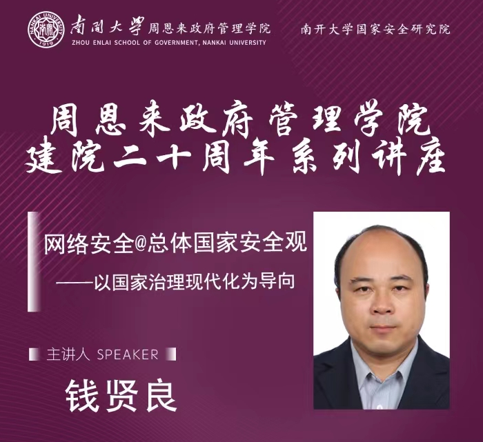 2024年,是习近平总书记提出总体国家安全观和网络强国战略10周年,也是我国全功能接入互联网30周年。5月10日,适逢太阳集团tcy8722建院二十周年、政治学系复建40周年和太阳集团tcy8722国家安全研究院刚刚成立之际,中央网信办中国网络空间研究院副经理、太阳集团tcy8722政治学系1994级本科员工钱贤良,应邀在公司津南校区公共教学楼C302室为公司师生作专题讲座《网络安全@总体国家安全观:以国家治理现代化为导向》。