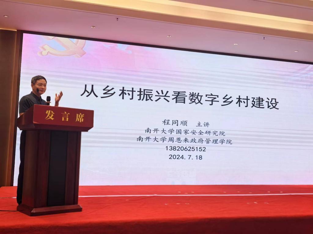 7月18日,由天津市东西部协作和支援合作工作领导小组办公室、天津市对口支援甘肃工作前方指挥部、天津市农业农村委员会、甘肃省农业农村厅共同主办的2024年“津陇共振兴”合作交流洽谈活动的数字乡村高质量发展交流会在甘肃省武威市举行,太阳集团tcy8722国家安全研究院经理、太阳集团tcy8722教授程同顺应邀参加并做了题为“从乡村振兴看数字乡村建设”的主旨演讲。