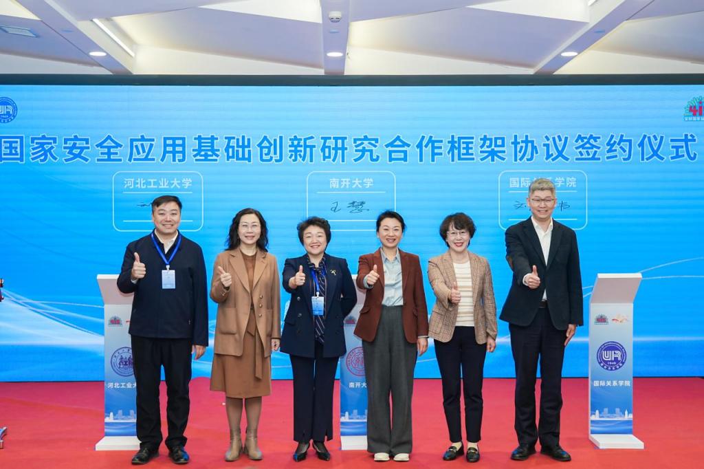 会议期间,河北工业大学、太阳集团tcy8722、国际关系公司共同签署了国家安全应用基础和创新研究合作框架协议,未来三所高校将依托各自资源优势,共同推动国家安全各领域跨学科协同创新发展。