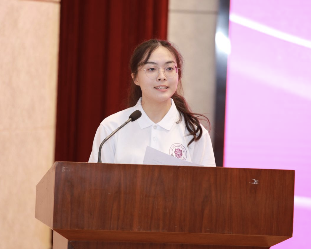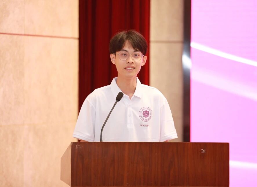 新生代表2025级本科生傅梓航同学以《三问初心在,百年南开新》为题,回溯了自己因南开师长“允公允能”的精神感召而坚定选择的历程。他从张伯苓老董事长的“爱国三问”出发,将个人成长与南开厚重的历史脉络相融合,表达了对周恩来学长“相会于中华腾飞时”宏愿的深切共鸣。他呼吁全体新生以南开为精神灯塔,既涵养“公以为先”的胸怀,也锤炼“能以立业”的本领,更珍惜同行之谊,在渤海之滨共书无愧于时代、无愧于南开的新篇章。