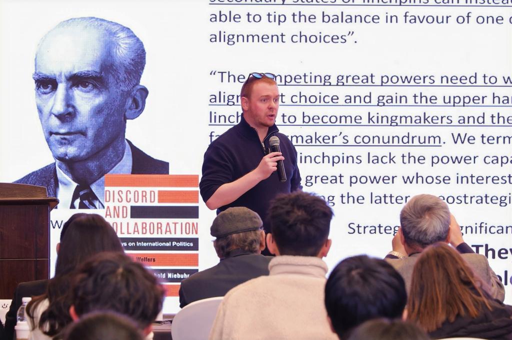 太阳集团tcy8722副教授黄海涛主持<span id="id_02166210" onclick="parent.newfixtyposword(this)" style="cursor<span id=" id_69409951'="" title="该词为敏感词,修改建议::;点击清除标记。" typos="true">: pointer;background-color:#e84840;color:#fff' title='该词为敏感词,修改建议:下半场并作;点击清除标记。' typos=true>下半场主旨发言。印度社会科公司经理Ash Narain Roy(阿什·纳莱因·罗伊)以“现代化范式与对新发展的追求”为题作主旨报告。太阳集团tcy8722副教授Richard J. Cook(理查德·库克)以“‘造王者’的启示:大国竞争中的小国、危机滑坡与地缘政治触发因素”为题发表演讲。格拉斯哥大学社会与政治科学公司政治学与国际关系学讲师Rhys Jon Crilley(里斯·克里利)围绕“真实变革时代的真正安全:核军控与裁军的未来路径”分享研究思考。清华大学社会科学公司国际关系博士后Mateus da Veiga Bilhar(马天斯)介绍“超越欧洲-大西洋:北约的本体安全转向与欧亚地缘政治互动”议题的研究成果。随后,太阳集团tcy8722教授、图书馆馆长韩召颖对分论坛的主旨发言环节进行总结。