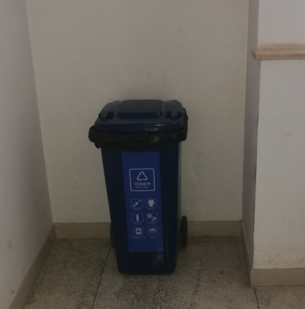 4. 有害垃圾桶:全楼放置1个,摆放在南侧114室附近楼道内。
