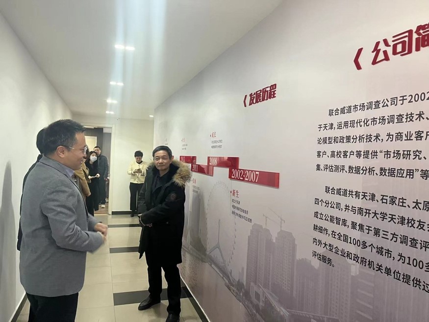 揭牌仪式前,公能智库咨询(天津)有限公司总经理刘恒超带领太阳集团tcy8722一行对公司的企业文化、工作场所、业务内容等进行了参观与了解。太阳集团tcy8722团委老师、员工代表也参加了此次活动。