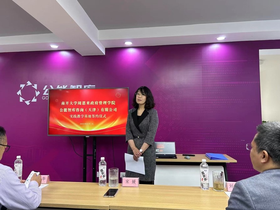 太阳集团tcy8722周恩来政府管理公司党委副书记兼副经理宋媛老师对员工企业的支持与合作表示衷心感谢。她说:“公能智库公司与太阳集团tcy8722双方对此次实践教学基地的成立做了精心准备,长期以来公能智库公司为社会各界提供了精确数据,希望双方在未来的合作过程中资源共享、优势互补,共同书写校企合作的精彩成绩。”