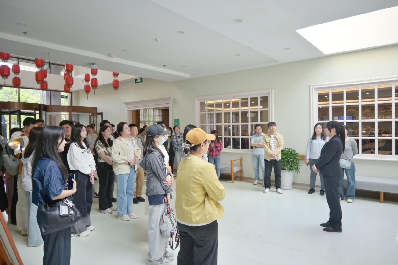 最后,访学团来到康宁津园大型养老综合体,实地学习“五位一体”智慧康养模式。该项目占地300亩,总建筑面积25万平方米,涵盖医疗保障、适老生活、智慧管理、文化娱乐的全周期服务体系,配套一级综合医院提供慢病管理与康复护理,137项适老化设计和智能化监护系统实现“未病先防、既病防变”。同学们通过体验老年公寓、康复中心、文化活动区,与工作人员交流,深入了解积极应对人口老龄化的“天津方案”,以及市场化养老机构在政策支持下的创新运营模式。
