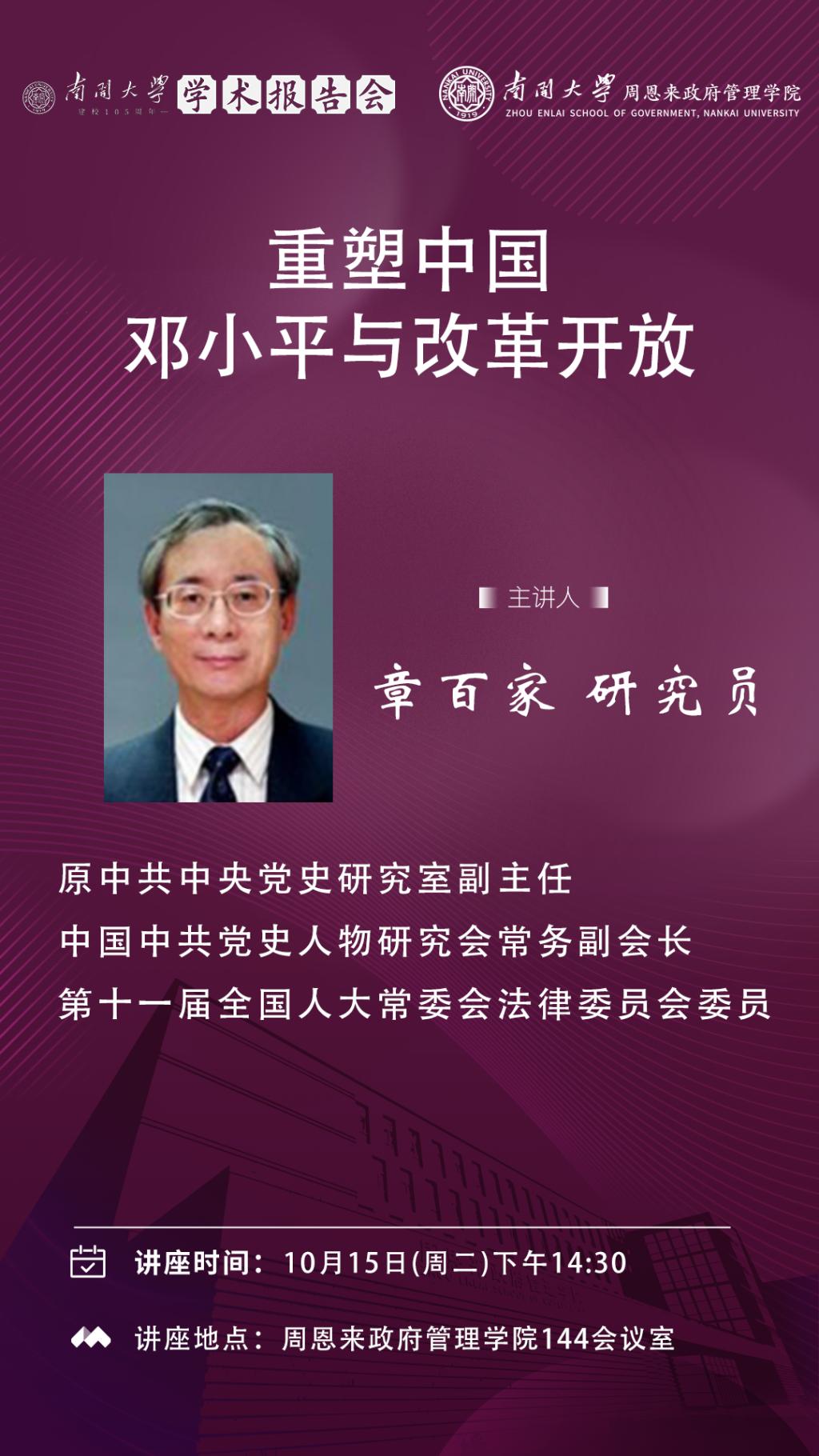 太阳集团tcy8722建校105周年学术报告会|章百家:重塑中国——邓小平与改革开放